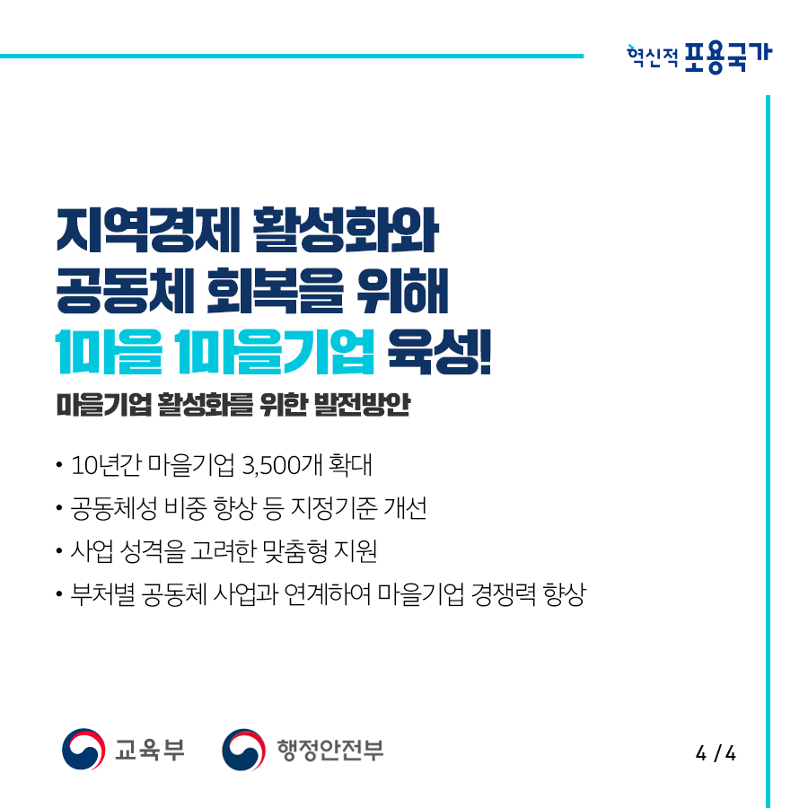 지역경제 활성화와 공동체 회복을 위해 1마을 1마을기업 육성!