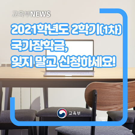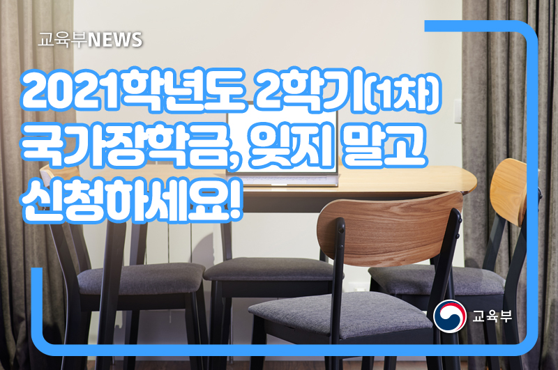 교육부(부총리 겸 교육부장관 유은혜)와 한국장학재단(이사장 이정우, 이하 재단)은 5월 18일(화) 9시부터 6월 17일(목)까지 2021학년도 2학기 1차 국가장학금 신청을 받는다.