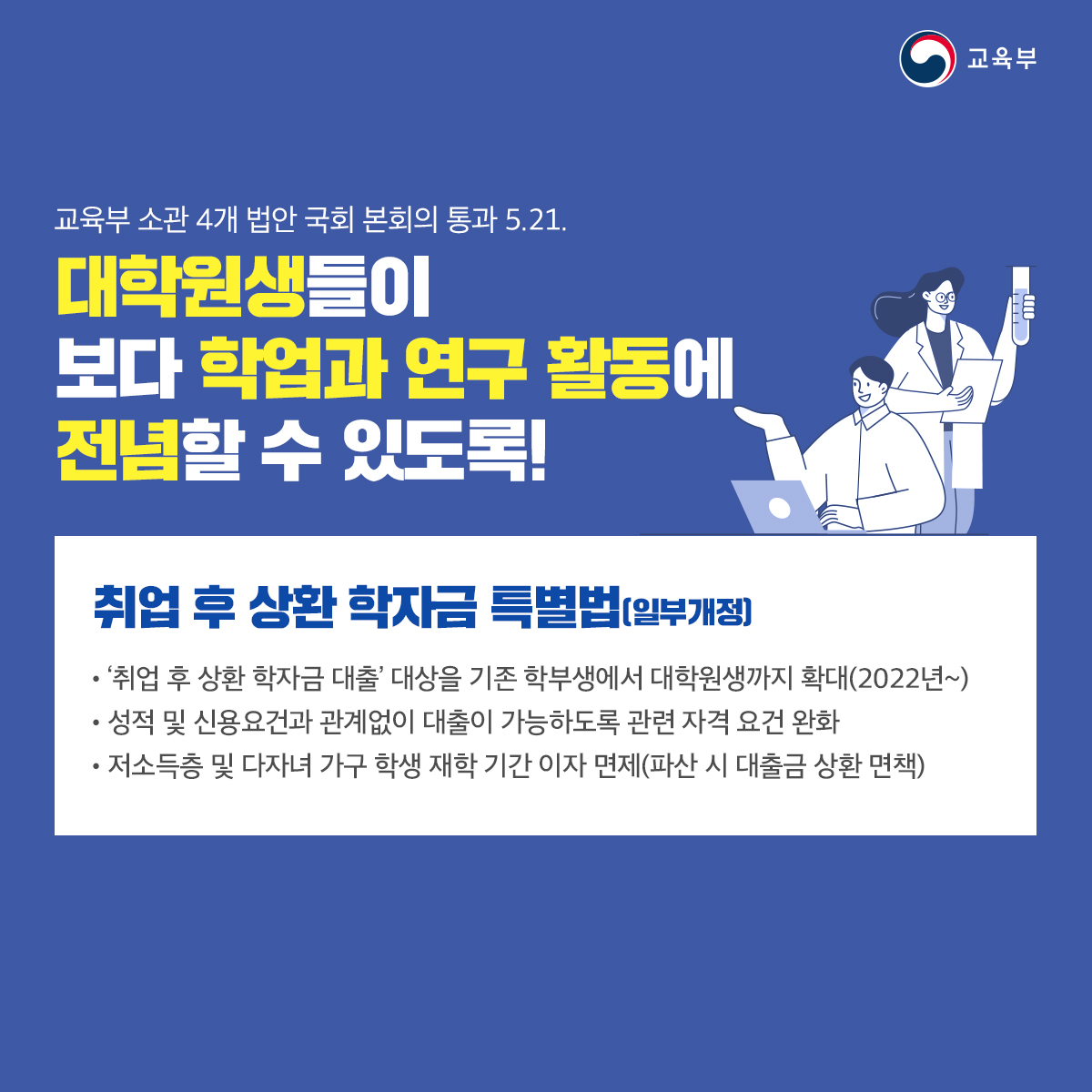 ✔ '취업 후 상환 학자금 대출' 대상을 기존 학부생에서 대학원생까지 확대