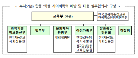 * 교육부(주관)‧과학기술정보통신부‧법무부‧문화체육관광부‧여성가족부‧방송통신위원회‧경찰청