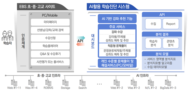 또한, EBS 고교강의에서 제공하던 고등학생 대상의 기존 인공지능(AI) 학습진단 서비스를 고도화하는 한편, 초·중학생용 서비스도 새롭게 구축하여 22년 3월부터 제공할 예정이다.
