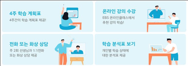온라인 학습 길잡이(멘토)로 교·사대 재학 중인 예비교사, 방과 후 교사 등을 선발하고, EBS 콘텐츠와 ‘EBS 온라인클래스’(학습관리시스템) 등을 활용하여 학생들의 학년별·과목별 온라인 학습을 지원한다.