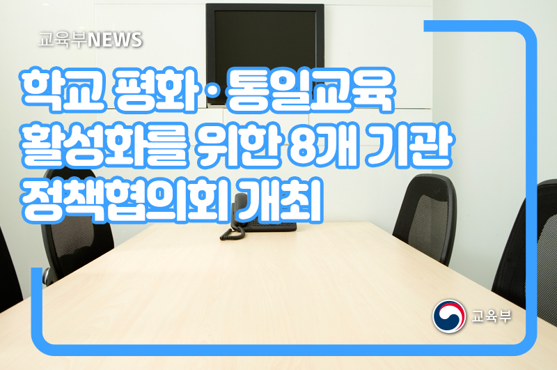 교육부(부총리 겸 교육부장관 유은혜)는 학교 평화‧통일교육 활성화 지원을 위한 ‘8개 기관 정책협의회’를 5월 28일(금), 베스트웨스턴호텔세종(세종 소재)에서 개최한다.