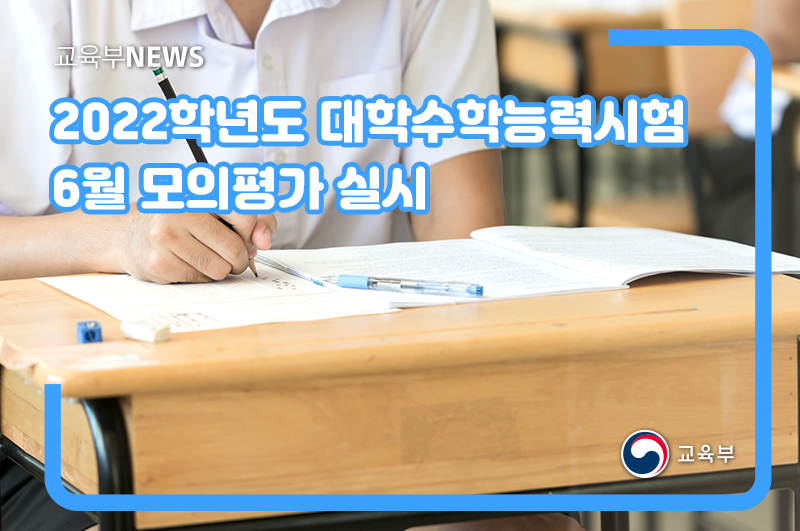 한국교육과정평가원(원장 강태중)은 2022학년도 대학수학능력시험 6월 모의평가를 6월 3일(목) 오전 8시 40분부터 전국 2,062개 고등학교(교육청 포함)와 413개 지정학원에서 동시에 실시한다고 발표하였다.