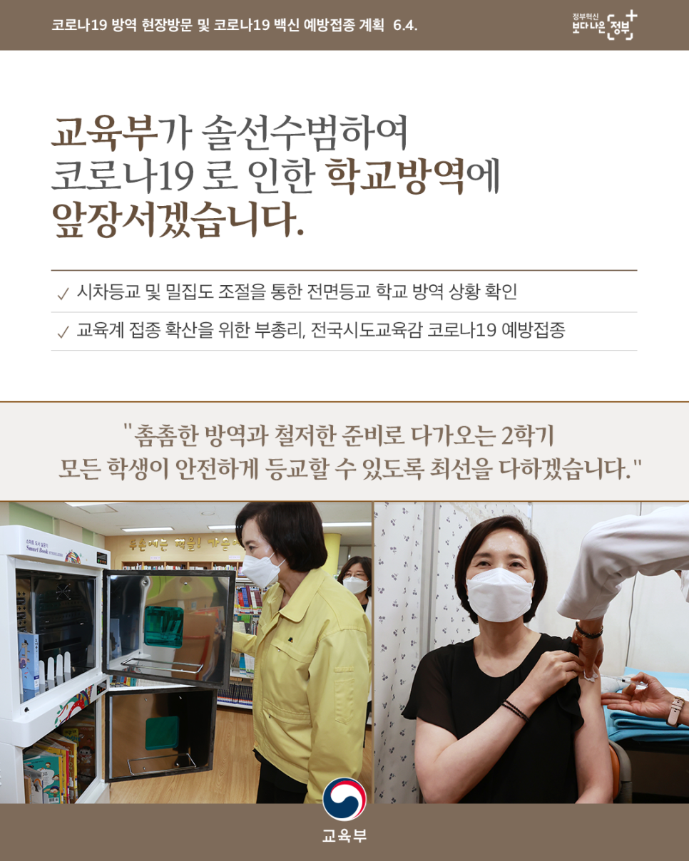 교육부가 솔선수범하여 코로나 19로 인한 학교 방역에 앞장서서