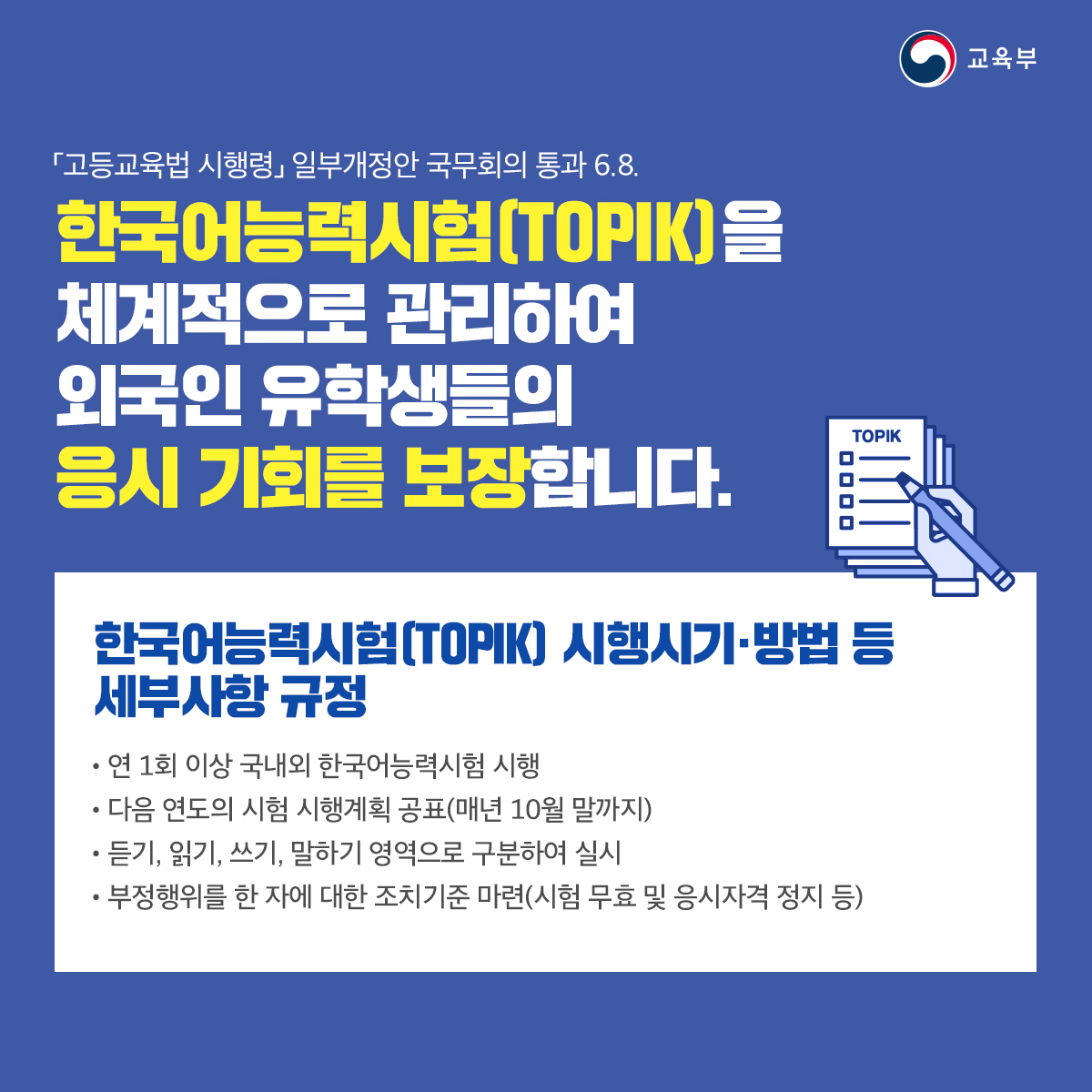 한국어능력시험(TOPIK) 시행시기·방법 등 세부사항 규정