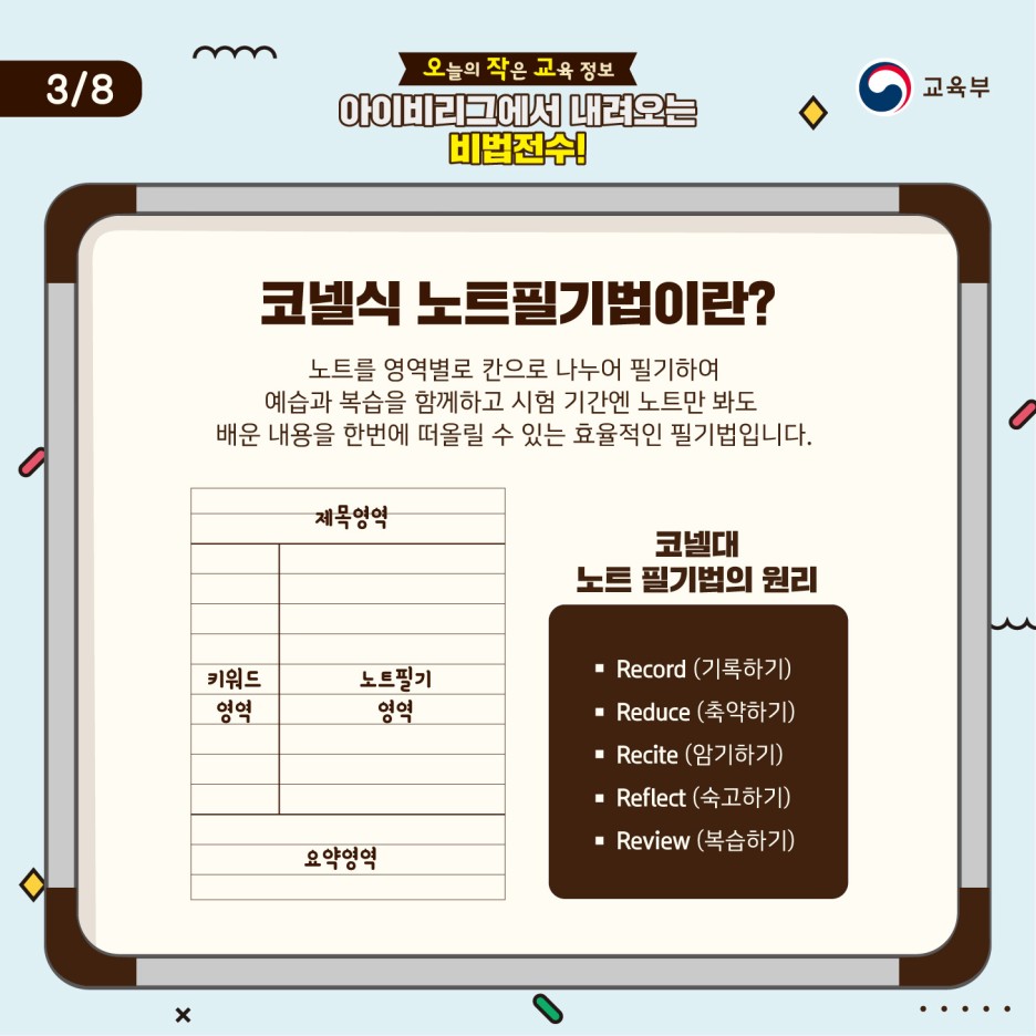 [오늘의 작은 교육 정보] 아이비리그에서 내려오는 비법 전수! 코넬식 노트 필기법 본문