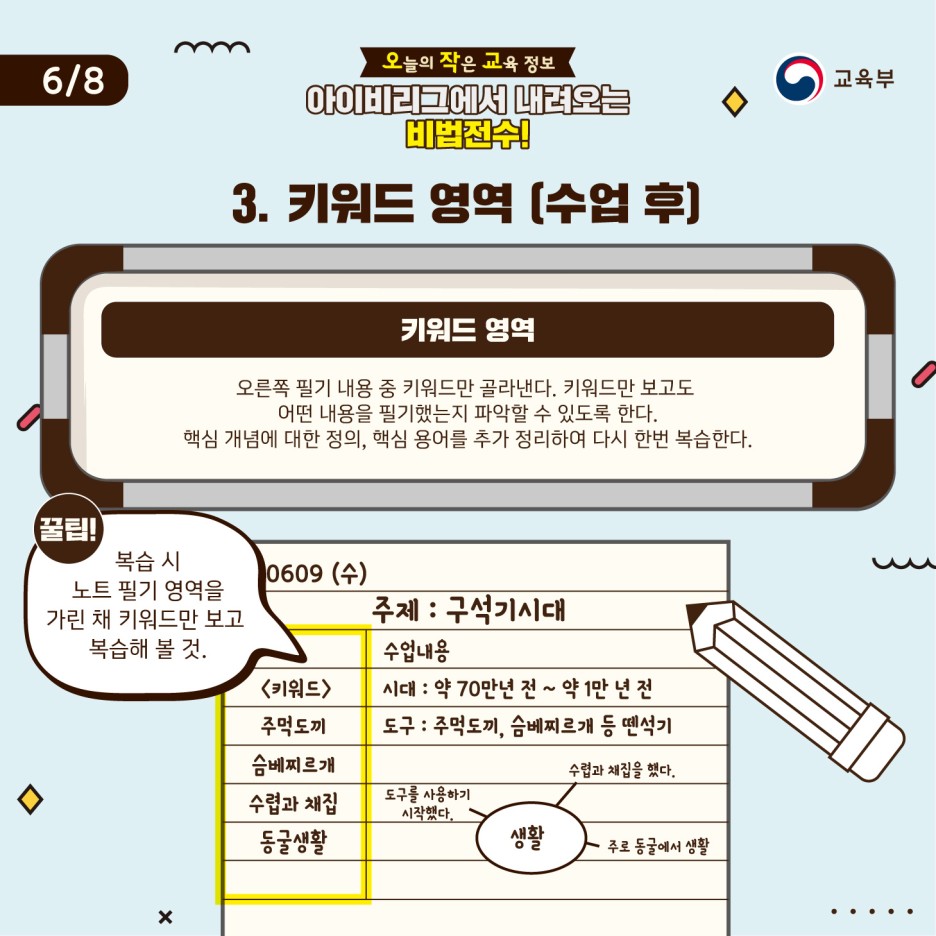 ▶ 복습 시 노트 필기 영역을 가린 채 키워드만 보고 복습해 볼 것.