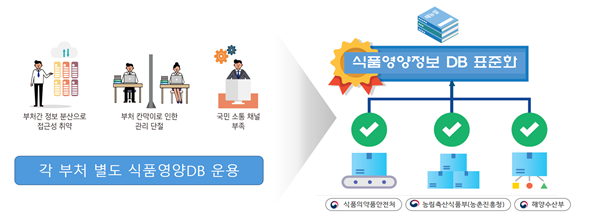각 부처는 농․축․수산물과 가공식품에 체계화된 표준코드를 부여해 식품정보와 영양성분정보의 표기방법(단위, 명칭 등)을 통일시키고 중복된 식품영양정보를 삭제·보완 등 관리해 정보의 품질을 향상시킨다.