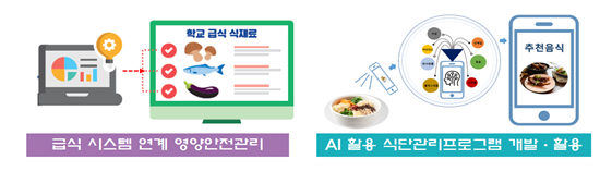 * 성장기를 고려한 연령별·대상별 맞춤형 식단, 저염식·제철식단, 식재료 수급이 어려운 경우 대체식단을 인공지능(AI)이 추천해 어린이에게 질 좋은 급식 제공