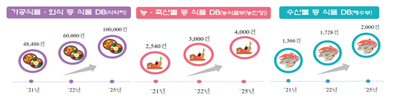* 가공식품․외식 등 식품 DB(식품수): (`21) 48,486건 → (`22) 60,000건 → (`25) 100,000건