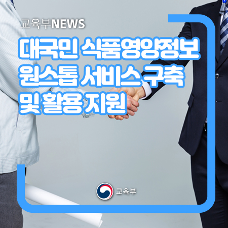 대국민 식품영양정보 원스톱 서비스 구축 및 활용 지원 6월 9일(수), 교육부․농림축산식품부․식품의약품안전처․해양수산부 업무협약 체결