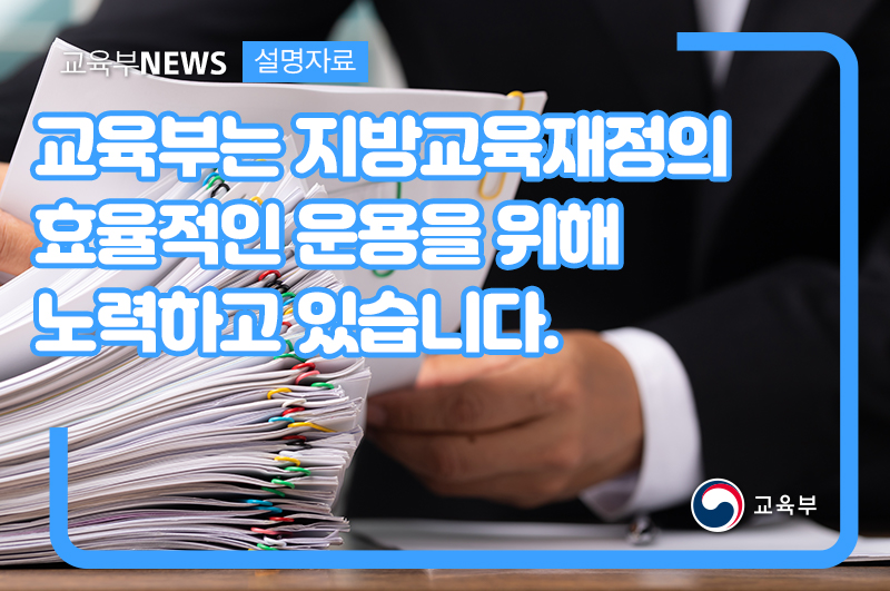 교육부는 미래교육 수요에 대응하고, 지방교육재정을 효율적으로 운용하기 위해 시도교육청과의 긴밀한 협력을 통해 지속적으로 노력해 나가겠습니다.