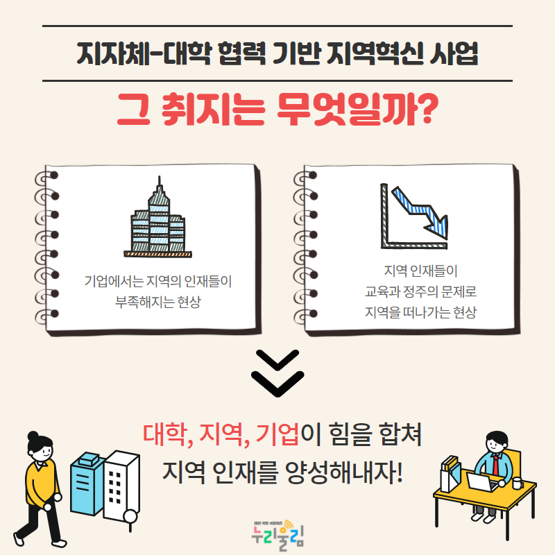 학업을 위해 수도권으로 이동할 수밖에 없었던 청년들도 든든한 지원을 받으며 자신이 원래 살던 지역에서 원하는 공부를 할 수 있게 되었습니다. 기업은 각 지역의 혁신 인재들과 함께 발전해 나가고, 지역은 해당 산업 분야에서 경쟁력을 가지게 되는 등 일석삼조의 효과가 기대되는 사업이라고 할 수 있겠네요!