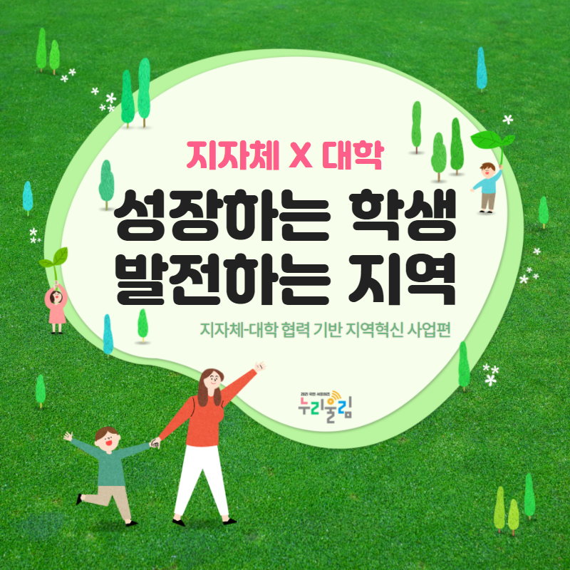 지자체-대학 협력기반 지역혁신 사업은 지자체, 대학, 지역 참여 혁신 기관들이 협력하여 신산업 분야의 핵심 성과를 달성하기 위한 인재 양성에 힘쓰는 사업이에요. 학생에게는 폭넓은 학업의 장을, 기업과 대학에는 인재 양성의 기회를, 지역에서는 발전의 발판을 만듦으로써 사회의 여러 주체들에게 큰 도움이 될 수 있답니다!