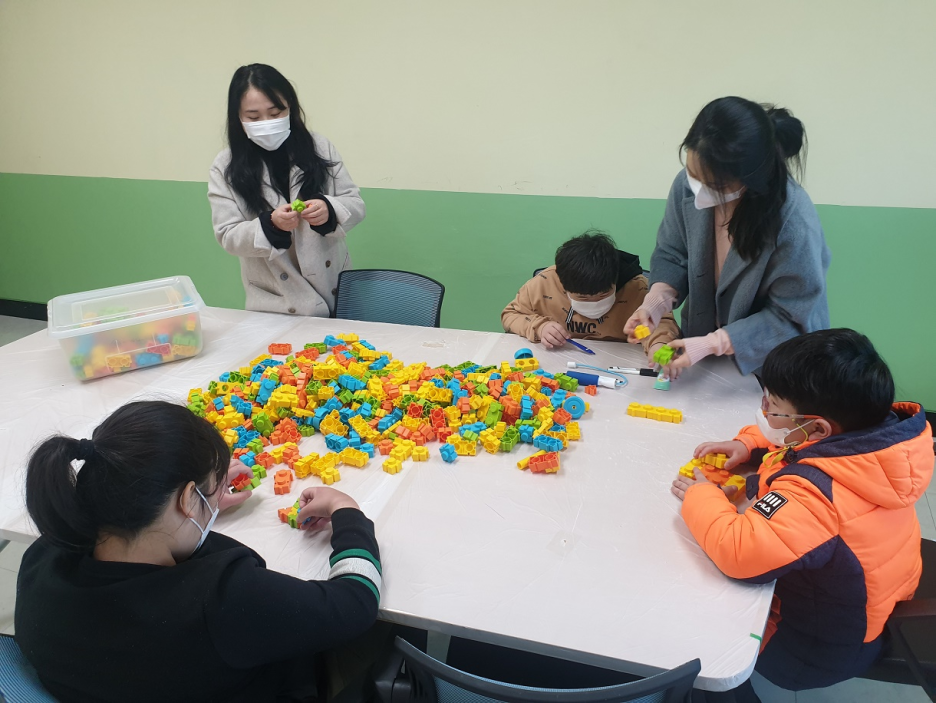 방학 때도 장애 학생이 안전하게 활동할 수 있는 환경을 만들고 있습니다. 그 예시로 창녕교육지원청 특수교육지원센터에서 올해 초에 운영한 ‘희망 나눔학교’가 있습니다. 맞벌이 가정, 한 부모 가정, 조손가정 등 코로나 상황 속 돌봄 공백이 우려되는 특수교육 학생들이 대상이었는데요. 나눔학교에서는 긴급돌봄을 지원과 함께 지속적인 교육 프로그램을 제공하고 있습니다. 사진 속에서 교사와 학생들이 즐겁게 레고 수업을 하는 모습을 볼 수 있는데요. 레고, 가베, 재활 체육, 인지 수업 등 다양한 프로그램을 통해 특수교육 학생들이 건전하고 유익한 여가 활동을 할 수 있도록 돕고 있습니다.
