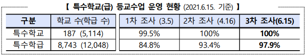 ◈ 1학기 특수학교 100%, 특수학급 97.9% 등교수업 실시