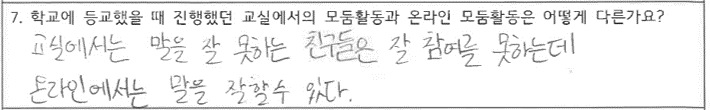 코로나19로 인해 유례없는 온라인 수업이 시작되었습니다. 선생님도, 아이들도 온라인 수업에서는 전부 초보였습니다. 선생님은 IT 기기를 다루는 것이 어려웠고, 아이들은 선생님이 없는 집에서 나 홀로 규칙적으로 수업을 듣는 것이 어려웠습니다. 하지만 이러한 어려움에도 온라인 수업이었기 때문에 가능했던 것들이 있습니다.
