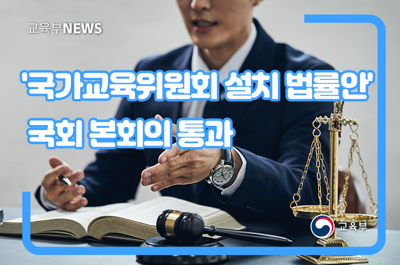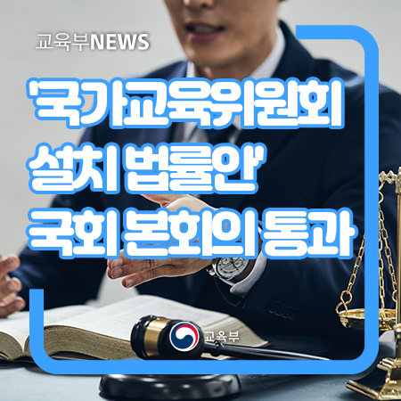 교육부(부총리 겸 교육부장관 유은혜)는 7월 1일(목) 제388회 국회(임시회) 본회의에서 「국가교육위원회 설치 및 운영에 관한 법률(이하 ‘국가교육위원회 설치법’)」이 의결되었다고 발표했다.
