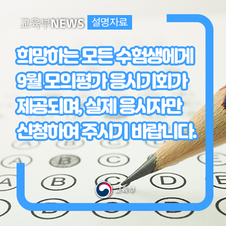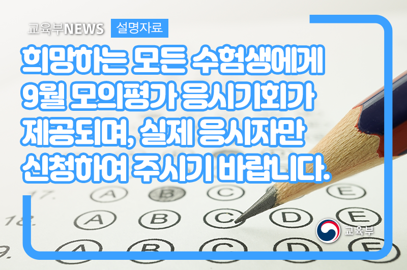 희망하는 모든 수험생에게 9월 모의평가 응시기회가 제공되며, 실제 응시자만 신청하여 주시기 바랍니다. 본문