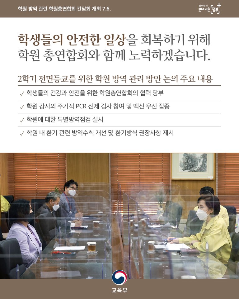 학원 방역 관련 학원총연합회 간담회 개최_7.6. 본문