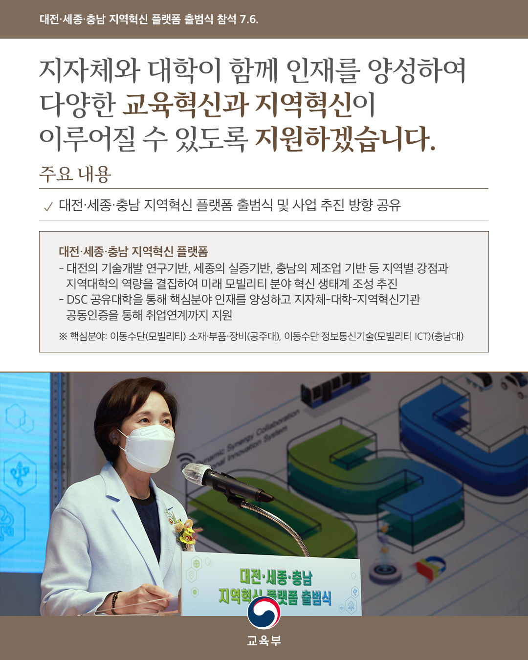 대전·세종·충남 지역에서 다양한 교육혁신과 지역혁신이 이루어질 수 있도록 지속적으로 지원하겠습니다.