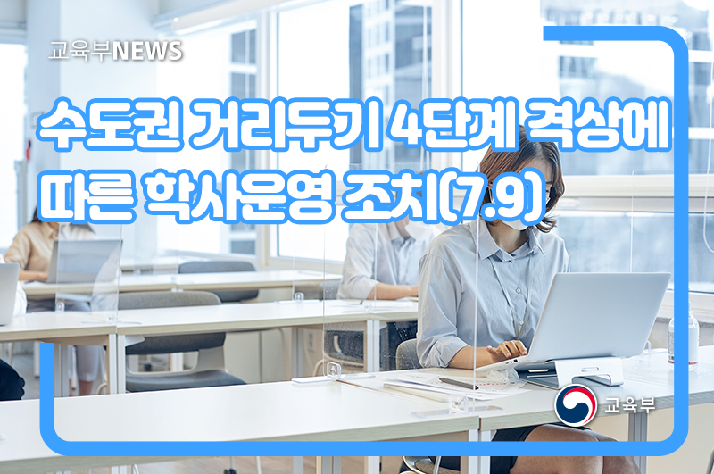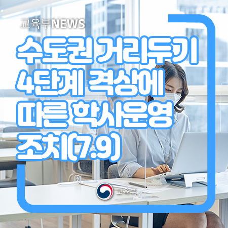 교육부(부총리 겸 교육부 장관 유은혜)는 7월 9일(금)에 열린 중앙재난안전대책본부(이하 중대본)에서 수도권 지역의 거리두기 개편안 4단계 격상을 결정함에 따라 학교의 학사일정도 조정하기로 하였다.