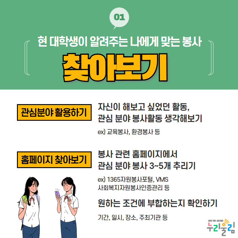1. 현 대학생이 알려주는 나에게 맞는 봉사 찾아보기