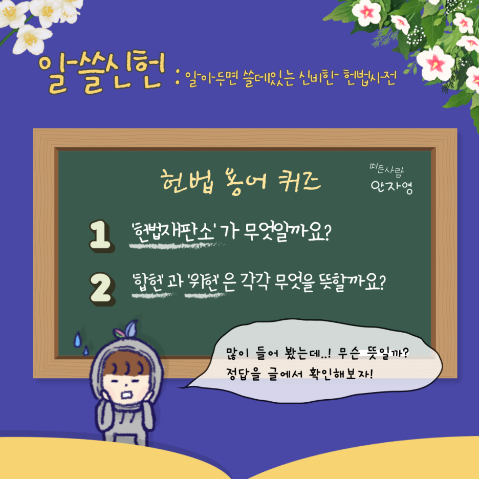 제헌절의 의미를 알고 나니 그럼 과연 이 ‘헌법’이라는 게 무엇인지 궁금하시지 않나요? 그럼 지금부터 법대생인 저와 함께 헌법이란 무엇인지 살펴보아요!