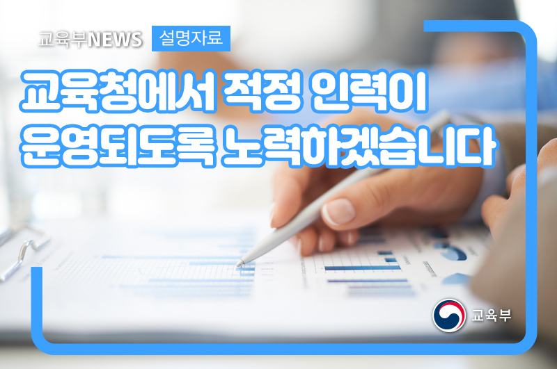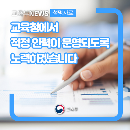 교육부는 미래교육 수요에 대응하고, 교육행정서비스의 질을 개선하기 위한 적정규모의 인력이 운용될 수 있도록 노력하겠습니다.
