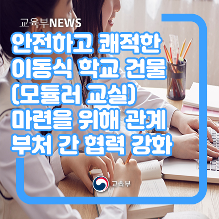 안전하고 쾌적한 이동식 학교 건물(모듈러 교실) 마련을 위해 관계 부처 간 협력 강화 - 교육부-조달청, 교육부-소방청 간 업무협약 체결 -