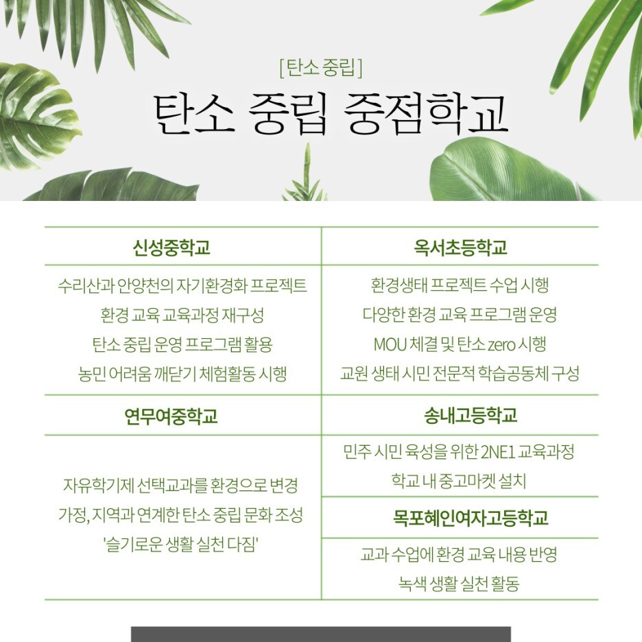 먼저, 교육부에서는 탄소 중립 중점학교로 5개교를 선정하여 탄소 중립 환경 조성을 위해 노력하고 있어요.