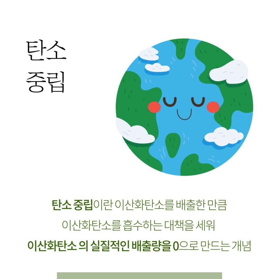 탄소 중립이란 이산화탄소를 배출한 만큼 이산화탄소를 흡수하는 대책을 세워 이산화탄소의 실질적인 배출량을 ‘0’으로 만든다는 개념입니다. 이산화탄소는 지구온난화의 주범이기 때문에 현재 이산화탄소 배출량을 조절하기 위해 모두가 노력하고 있다는 사실!