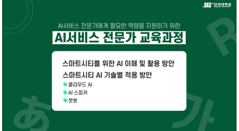 단국대학교 스마트시티 AI서비스 전문가 교육과정