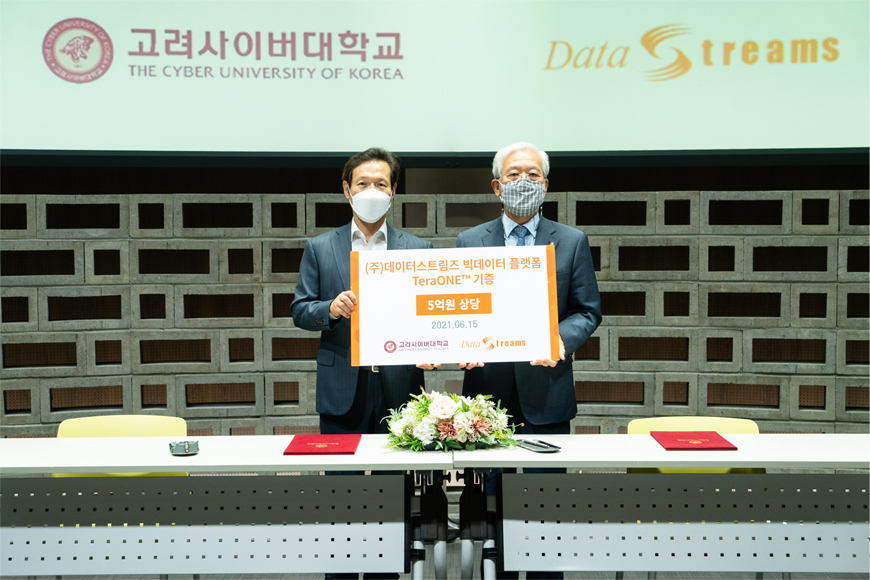 빅데이터 전문 기업인 DataStreams와 고려사이버대학교는 빅데이터 분야 인재 양성을 위해 교육과정을 개발하고 공동 연구와 사업 협력을 맺었는데요. 협약과 함께 DataStreams는 자사가 개발해 보급하고 있는 빅데이터 플랫폼 '테라원(TeraONE)'을 고려사이버대학교에 무상으로 기증했습니다. 학생들이 실질적인 빅데이터 실습 과정에 활용할 수 있도록 교육과정을 지원하고 기술 자문을 담당한다고 합니다.