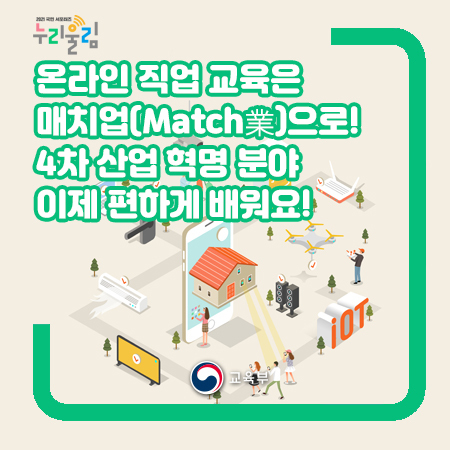 4차 산업 혁명 시대 핵심 기술인 인공지능, IoT, 빅데이터를 쉽고 편하게 배울 수 있는 방법이 있습니다. 바로 ‘매치업 사업’을 통해서인데요. 학생은 물론 재직자, 구직자 누구나 온라인으로 4차 산업혁명 분야를 교육받을 수 있어요. 급격한 기술 변화로 ‘새로운 기술과 새로운 지식’에 대한 요구가 커지고 있는 지금 매치업은 놓칠 수 없는 좋은 기회겠죠! 미래 산업 수요에 맞춘 매치업(Match業) 교육을 함께 자세히 알아볼까요?