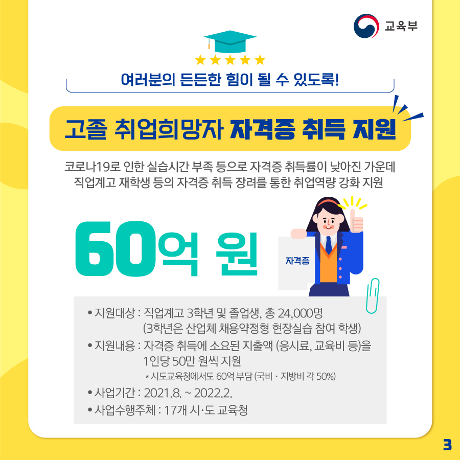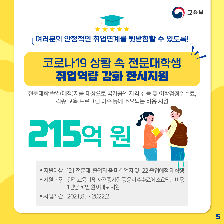 3. 코로나19 상황 속 전문대학생 취업역량 강화 한시지원 215억 원
