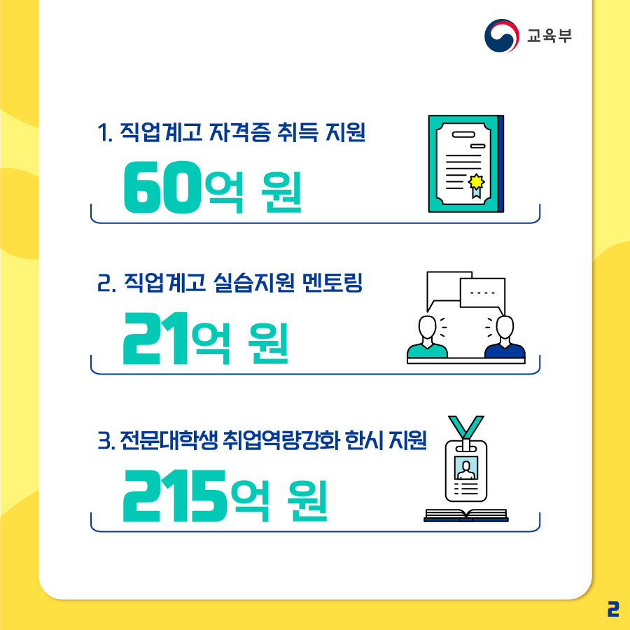 1. 고졸 취업희망자 자격증 취득 지원 60억 원