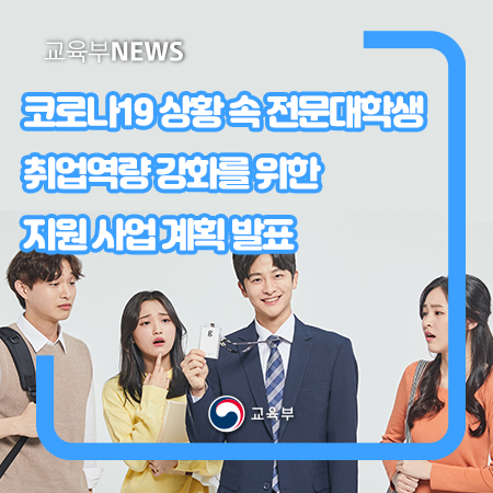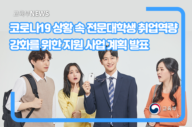 교육부(부총리 겸 교육부장관 유은혜)는 올해 신규 추진 예정인 ‘코로나19 상황 속 전문대학생 취업역량 강화 한시 지원 사업’ 기본계획을 발표하였다.