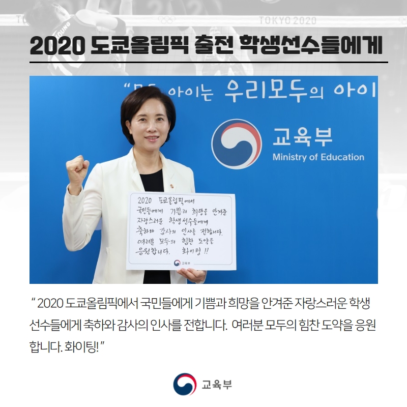2020 도쿄올림픽 출전 학생선수들에게 본문