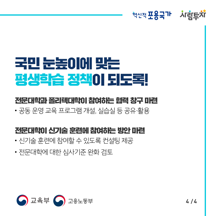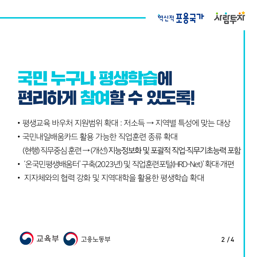 ✔ '평생교육 바우처' 지원 대상 및 '국민내일배움카드' 지원 분야 확대