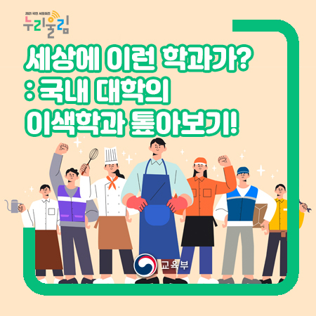 이제 곧 대학 원서 접수가 시작됩니다. 어느 학과를 지원해야 할지 고민하는 학생들을 위해 오늘은 국내 대학의 이색적인 학과를 소개하고자 합니다! 거의 모든 대학교에 존재하는 학과보다는 이색적이고 독특한 학과를 소개해보려고 하니, 이번 기회에 학과를 고르는데 조금 더 넓은 선택지를 가졌으면 좋겠습니다! 또한, 명확한 진로를 설정하지 못한 분들도 이런 다양한 학과가 존재함을 알고 관심을 가져 앞으로의 진로 선택에 도움이 되었으면 좋겠습니다. 그럼 함께 알아보러 가볼까요?