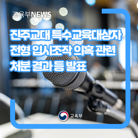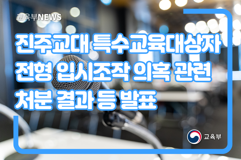 교육부(부총리 겸 교육부장관 유은혜)는 2018년 진주교육대학교(이하 진주교대) 특수교육대상자 전형 입시 조작 의혹*과 관련하여 사안조사 등의 절차를 거쳐 관련 조치를 확정하고 이를 대학에 8월 18일(수) 통보하였다.