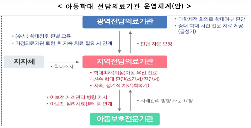 또한, 피해아동에 대한 의학적 진단 및 전문 치료를 담당하는 전담의료기관 활성화를 위해 전담의료기관의 역할을 명확히 하고,
