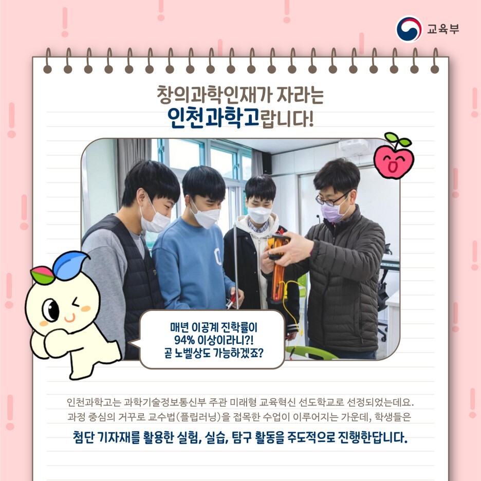 ✔ 인천과학고는 과학기술정보통신부 주관 미래형 교육혁신 선도학교로 선정되었습니다.