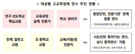 모든 고교의 교원, 교육전문직 등이 고교학점제를 심층 이해하고 운영 역량을 갖추도록 교육청과 함께 연수를 확대‧추진한다.