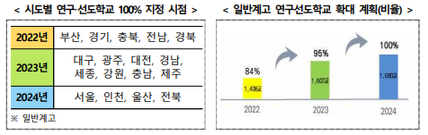 먼저, 현재 일반계고 55.9%가 참여하고 있는 연구‧선도학교 참여율을 80% 이상으로 높여 더 많은 학교가 학점제 운영 역량을 갖추도록 지원한다.