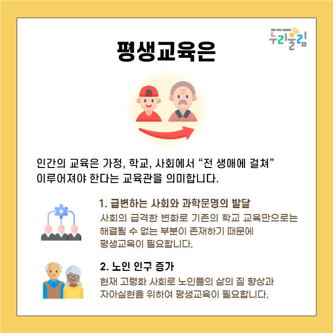 교육에는 끝이 없다! 평생에 걸쳐 진행되는 평생교육 본문