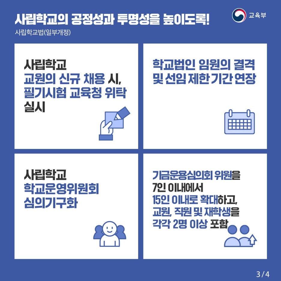 - 사립학교 교원의 신규 채용 시, 필기시험 교육청 위탁 실시