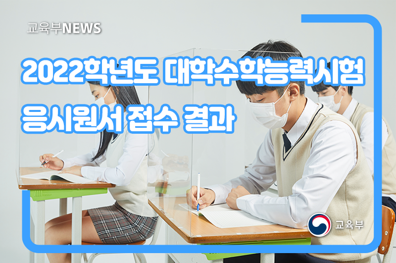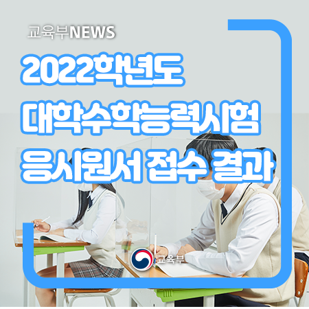 한국교육과정평가원(원장 강태중)은 2021. 11. 18.(목)에 실시되는 2022학년도 대학수학능력시험 응시원서 접수 결과를 다음과 같이 발표하였다.